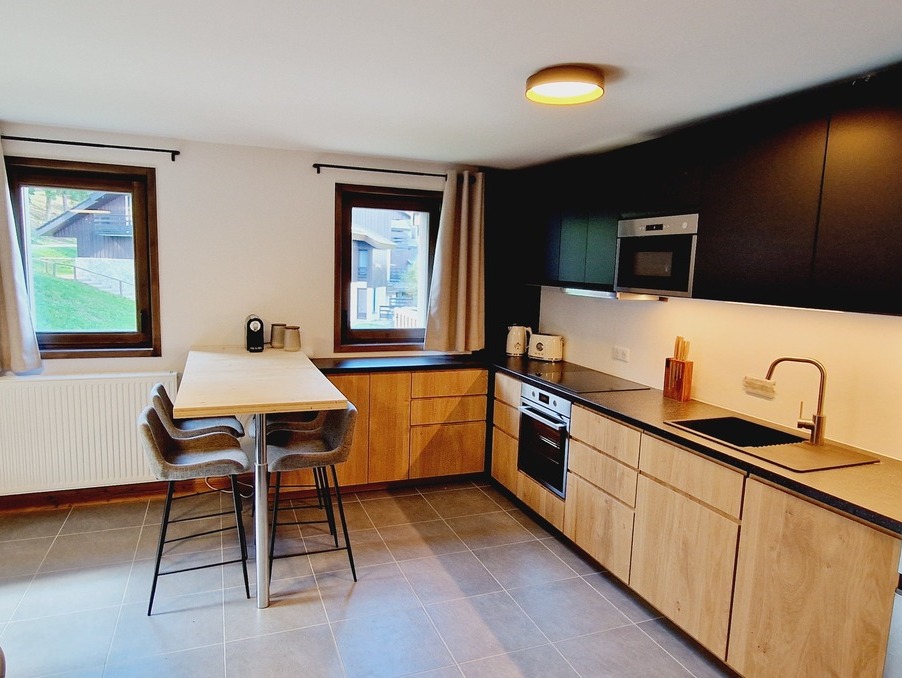 D\'une surface de 140m2, cet appartement duplex se compose d\'un spacieux séjour lumineux offrant une vue sur les montagnes, une cuisine entièrement équipée avec lave vaisselle, lave linge, réfrigérateur, 4 plaques, four, micro-ondes, cave à vin, grille pain, bouilloire électrique, appareil à raclette, cafetière...