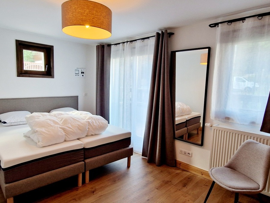 Une Suite parentale avec un lit double en 160, avec une salle de douche attenante et son WC.