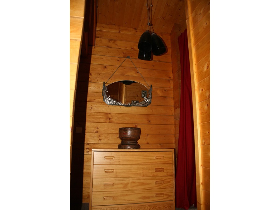 Une chambre avec un lit double (en 140) et placard de rangement.