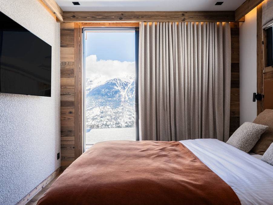 Face au sommet mythique du mont Blanc et au cœur du domaine skiable de Paradiski, laissez-vous envelopper par le confort du chalet, sa luminosité et ses vues panoramiques à couper le souffle sur les sommets enneigés.