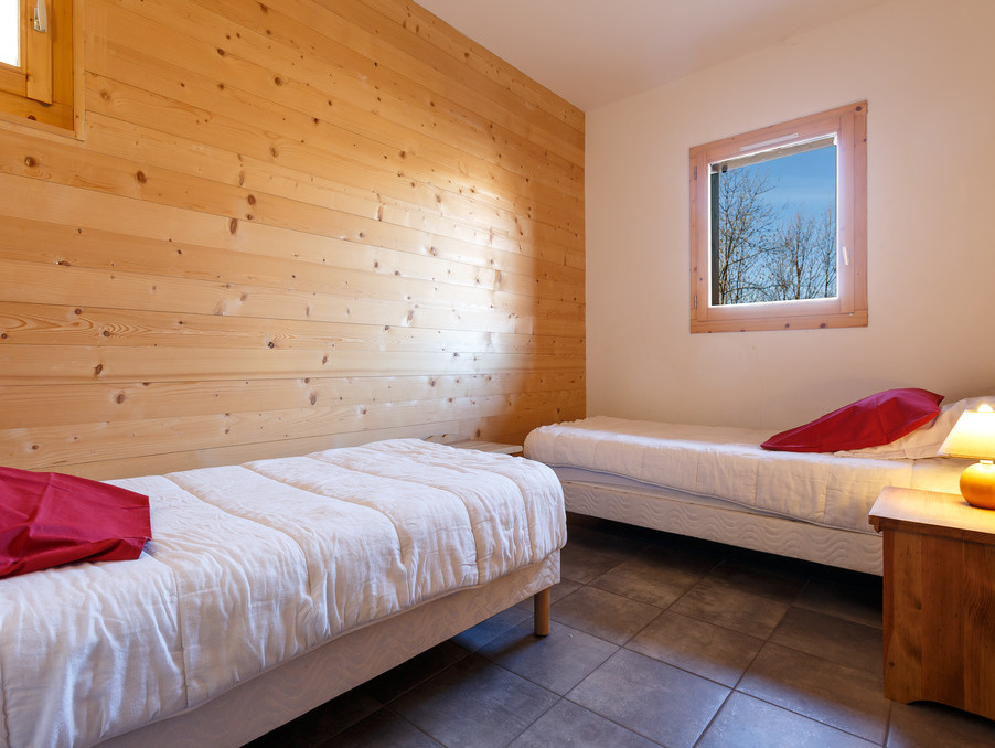 Une chambre en suite avec deux lits jumeaux en 80cm et une salle de douche attenante,