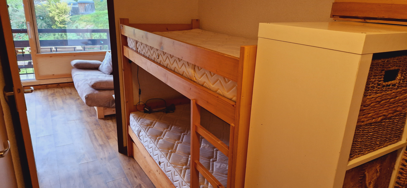 - Entrée avec coin montagne : deux lits superposés (80 cm), parfaits pour les enfants.