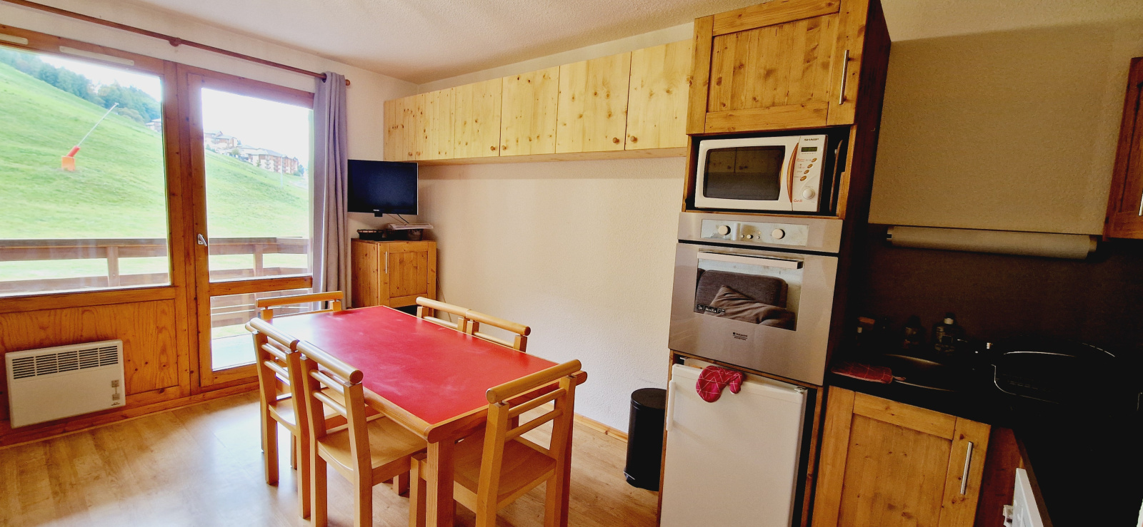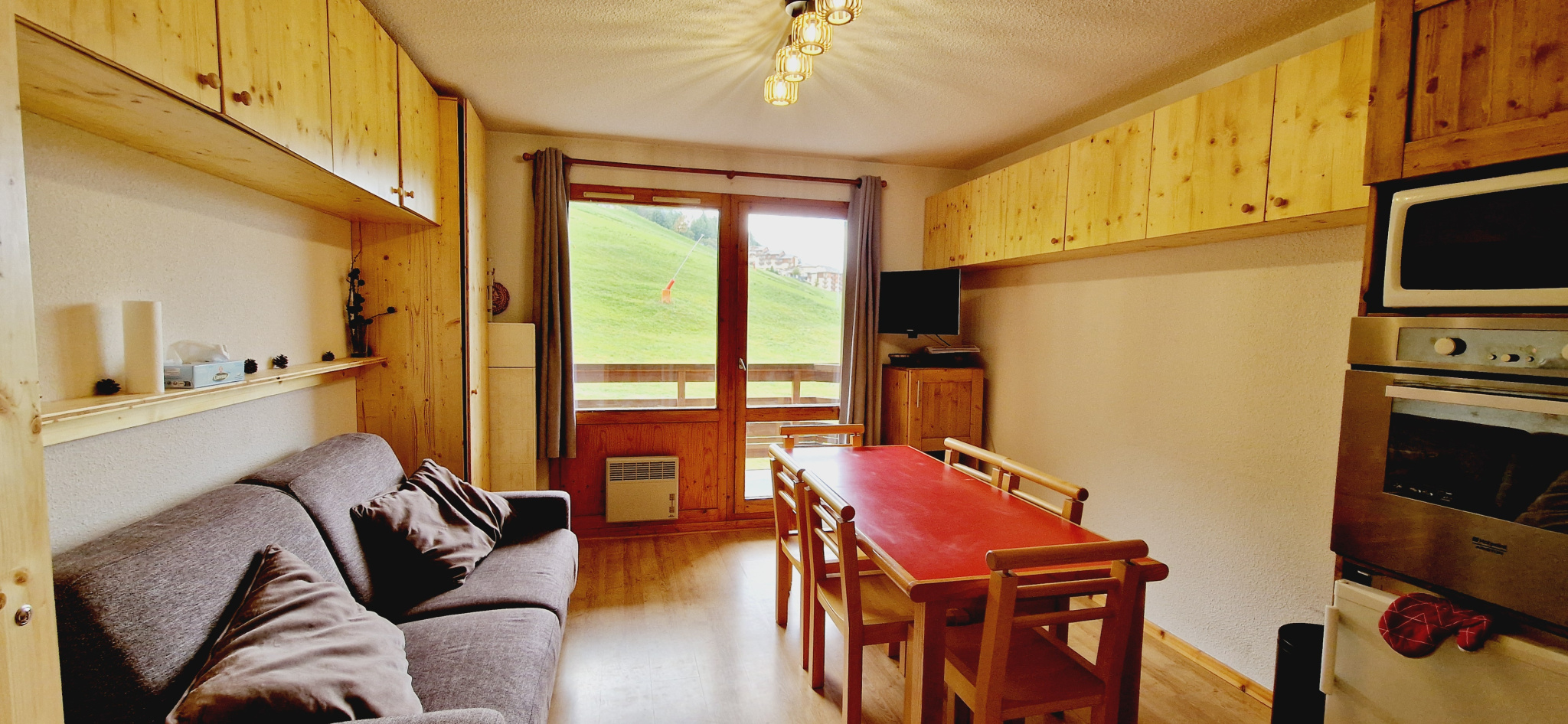 Nouveauté ! Studio coin montagne rénové dans résidence au pied des pistes. Idéal pour une famille, ce studio de 25m² est situé au 2ème étage, sans ascenseur. Il est meublé et équipé pour 4 personnes, et possède un balcon avec vue sur les pistes. Le centre station est accessible à 5min à pied.