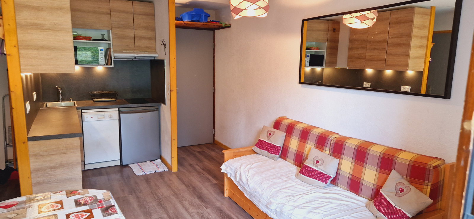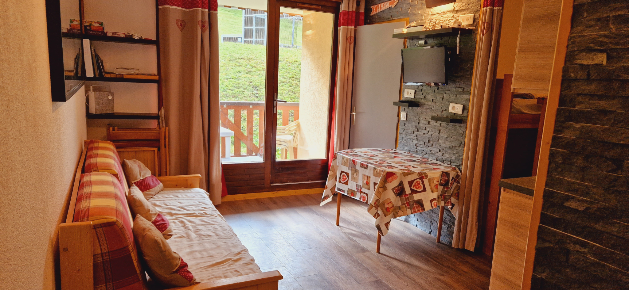 Très joli appartement 2 pièces + coin montagne dans une résidence proche des pistes et des commerces. Il est situé au 1er étage avec un accès direct aux pistes et à l'aire de jeux depuis le balcon. D'une superficie d'environ 28m², il est exposé Sud-est avec un balcon. Pas d'ascenseur.