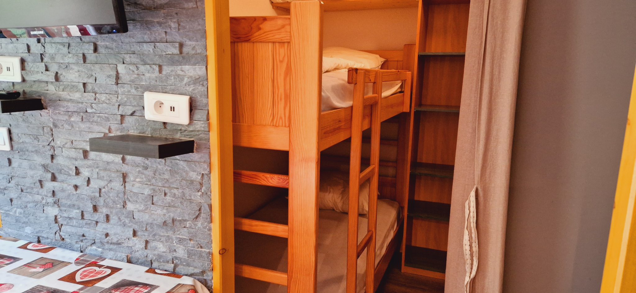 Un coin montagne dans le séjour avec deux lits superposés (en 90),