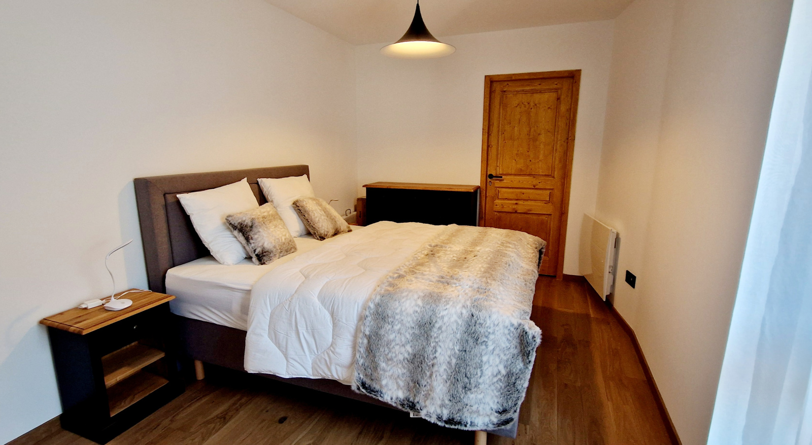 Une chambre avec un lit double en 160cm