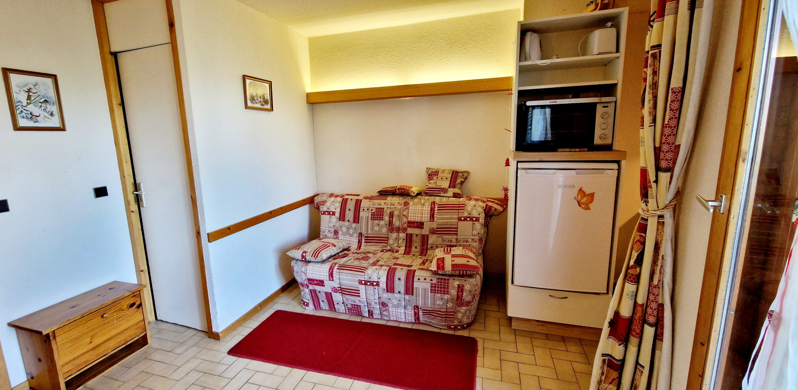Très joli appartement 2 pièces, de 26m², situé dans la résidence LES CHALETS DU PLANAY à la Plagne Montalbert. Situé au 1er étage mais avec un accès direct depuis la route, il est meublé et équipé pour 4 personnes. Un parking public gratuit est à proximité de la résidence et un casier à skis est disponible au rdc. Les pistes sont situés à environ 200m de la résidence. Idéal pour des vacances en famille.