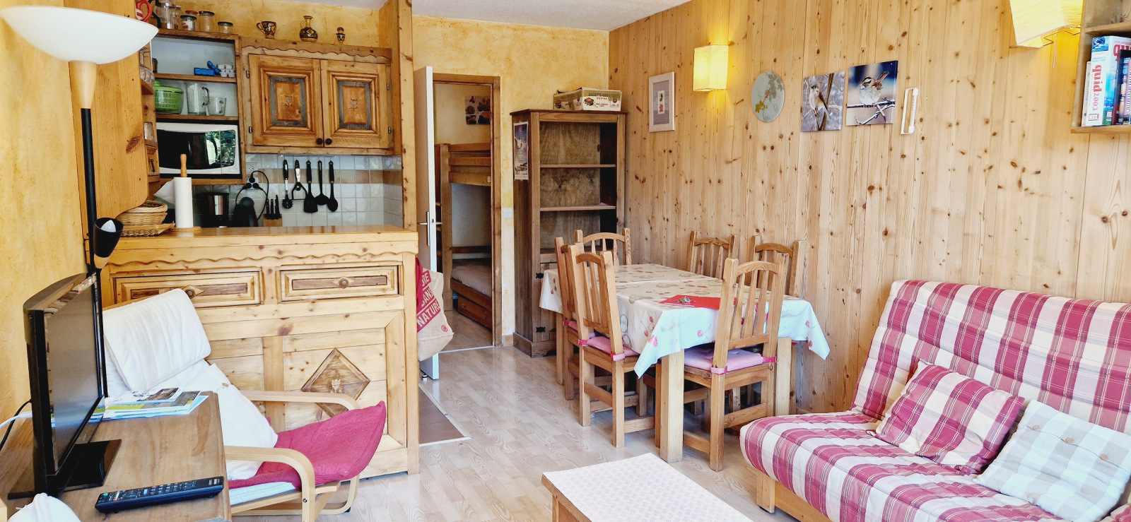 Situé en étage intermédiaire (2,5? étage en demi-niveaux, sans ascenseur), l’appartement dispose d’un balcon exposé Ouest, idéal pour profiter du soleil l’après-midi et des magnifiques couchers de soleil après une journée de ski.