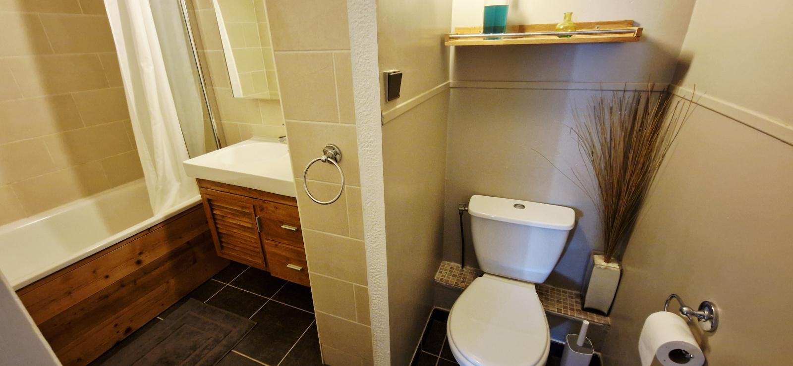 * 1 salle de bain avec baignoire et WC