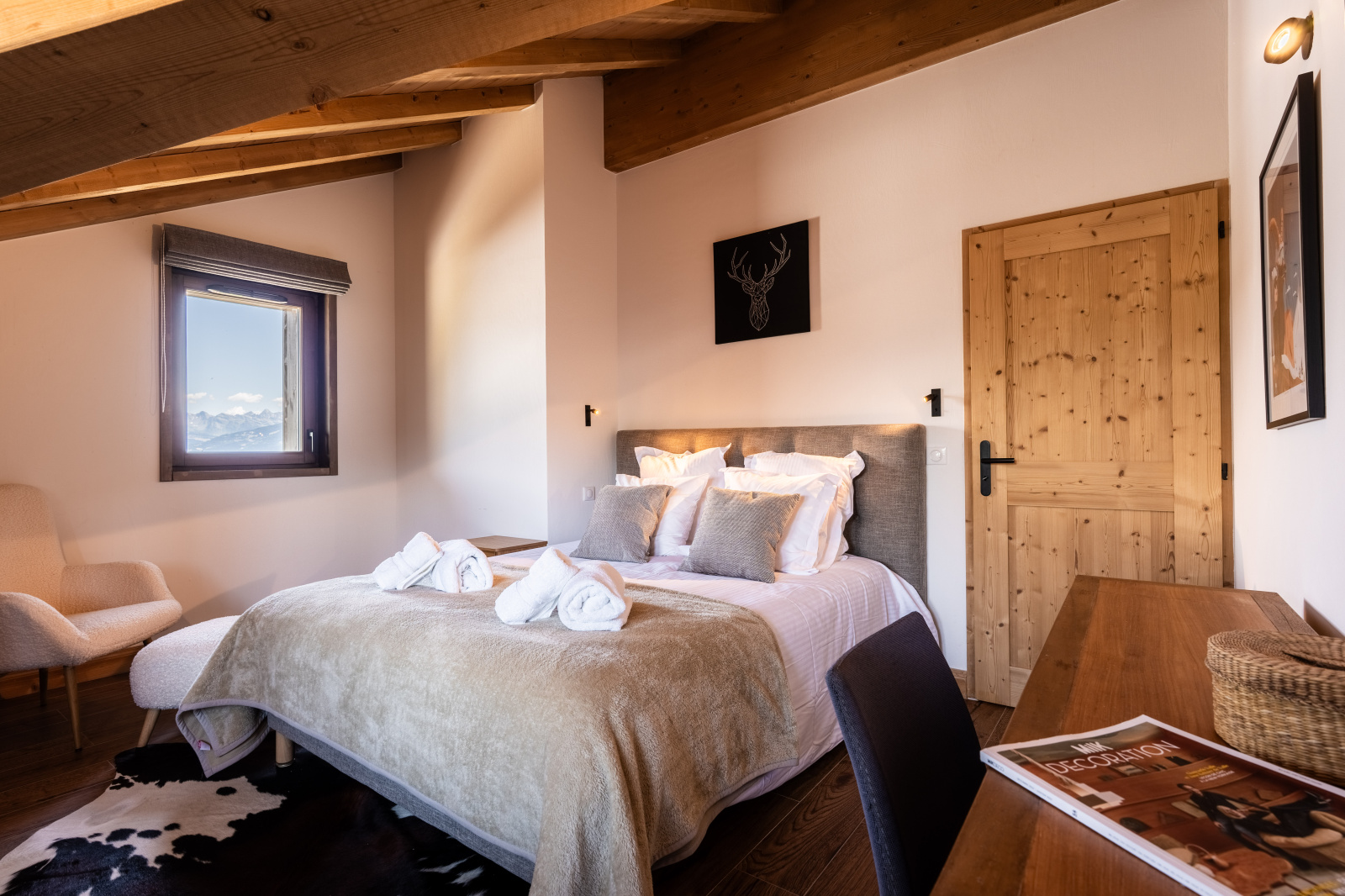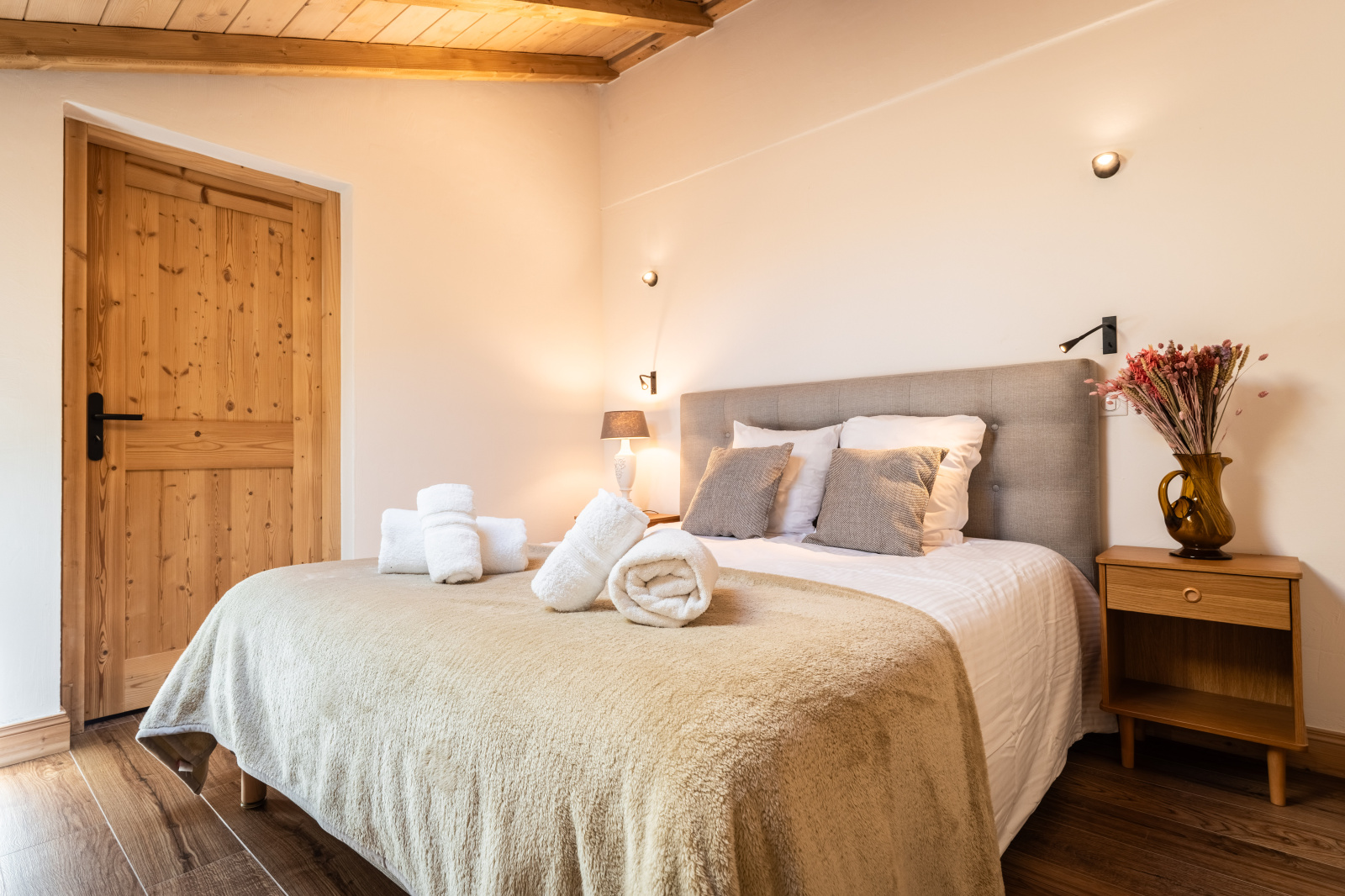 Une chambre avec un lit double en 160cm, accès à la terrasse,
