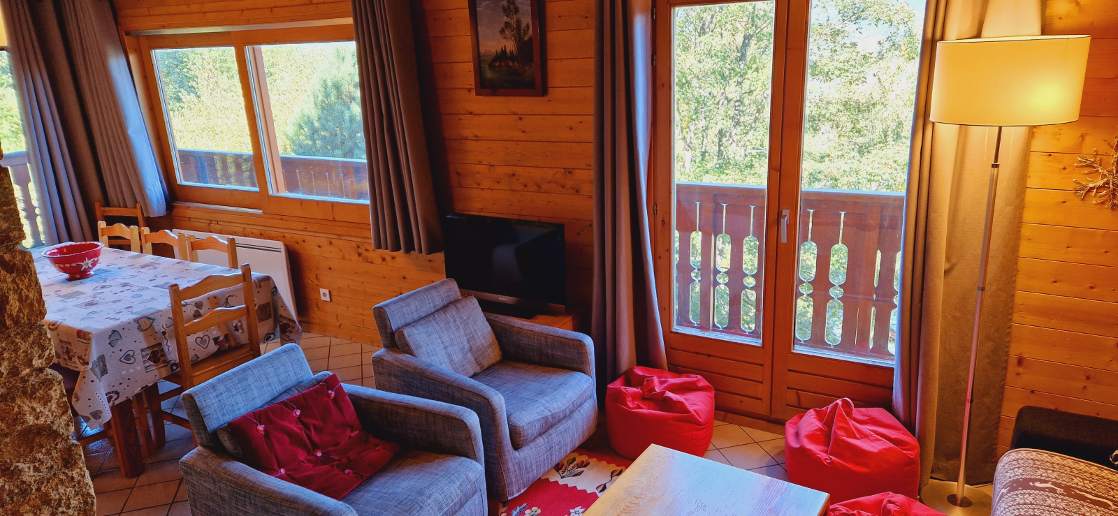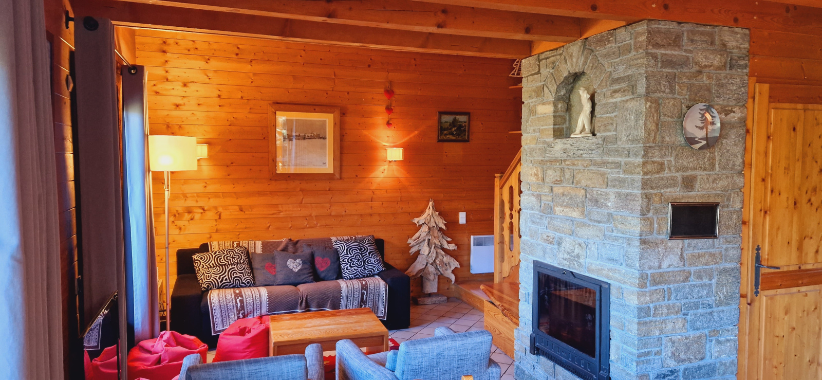 Au 1er étage, un séjour salon avec canapé-lit (en 140), télévision et cheminée,